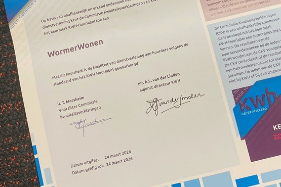 Het Kwaliteitscentrum Woningcorporaties Huursector (KWH) is een onafhankelijk instituut. Het KWH beoordeelt ieder jaar of onze kwaliteit voldoende is om het Label Zorgeloos Huren te krijgen. Sinds wij lid zijn van het KWH (2008) voldoen wij aan de eisen en is het label dus steeds verlengd. Dit verzekert u ervan dat u zorgeloos bij ons kunt huren. En valt er nog iets te verbeteren? Dan gaan wij daar meteen mee aan de slag! Wilt u meer weten over het KWH en het Label Zorgeloos Huren? Kijk dan op de website van KWH.