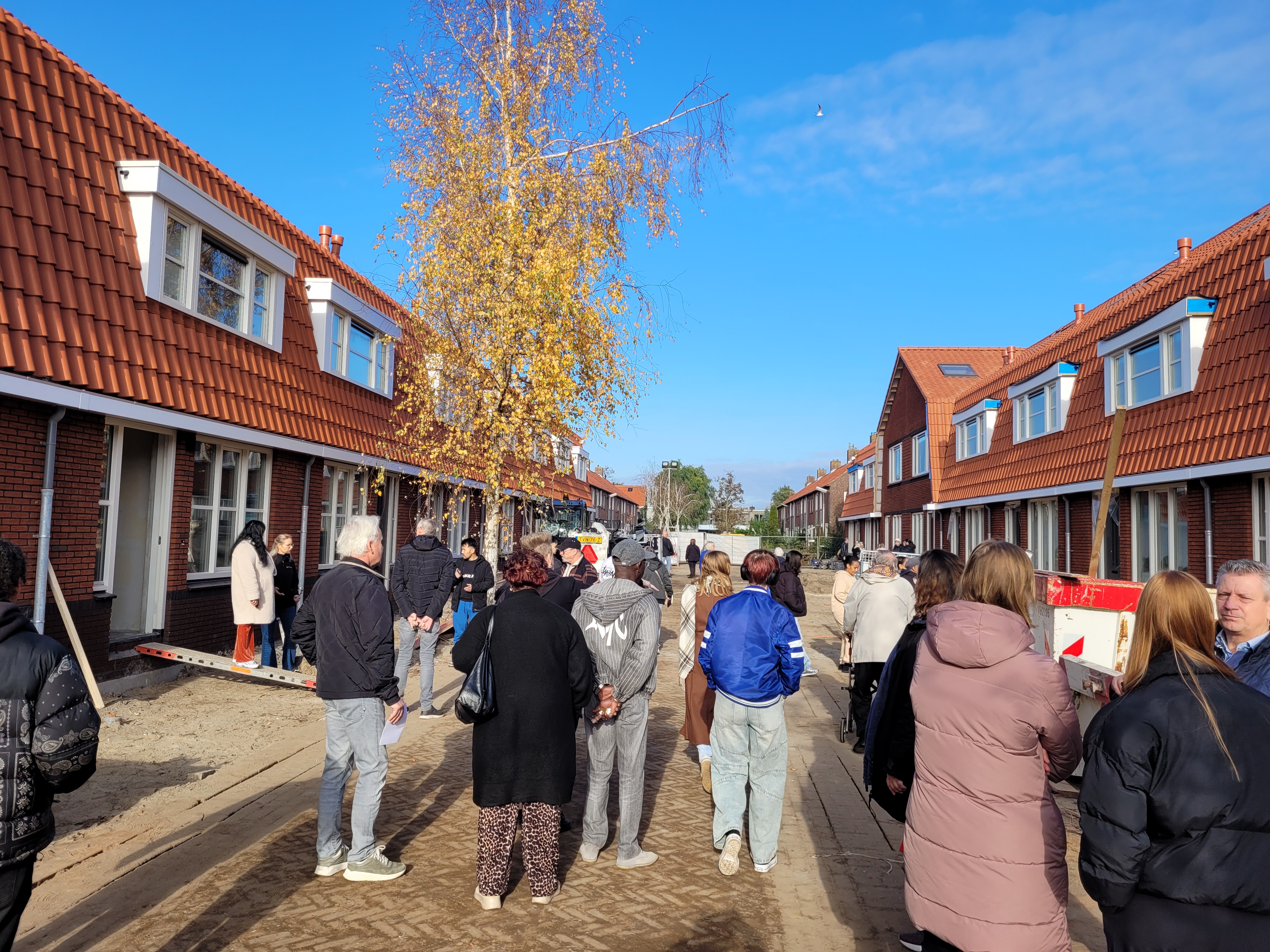 Het was prachtig weer en de belangstelling was groot. Veel bewoners kwamen langs om alvast een kijkje te nemen in hun nieuwe woning. Bewoners konden vragen stellen over hun nieuwe woning en de verhuizing. De sfeer was ontspannen en vrolijk. De reacties waren erg positief — bewoners zijn enthousiast over de kwaliteit van de woningen en kijken uit naar het moment dat ze echt de sleutel in handen krijgen.